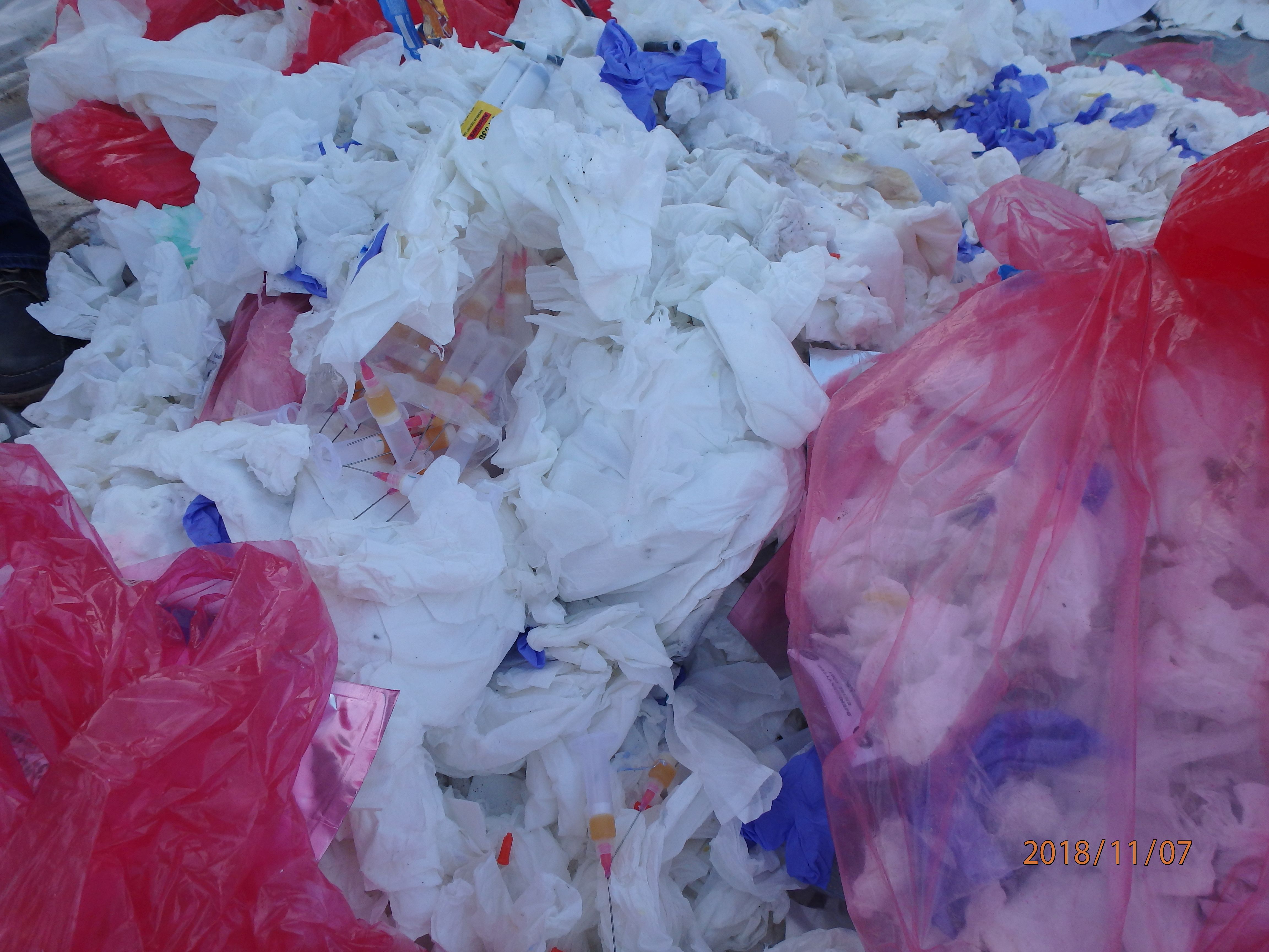 Oprócz odpadów medycznych stwierdzono obecność zaolejonego czyściwa, odpadów budowlanych (stolarka okienna wraz z szybami), opakowań zawierających pozostałości substancji niebezpiecznych, ziemi wymieszanej z lepką mazistą substancją o wyraźnym zapachu substancji ropopochodnych (odpady mogą pochodzić z separatorów substancji ropopochodnych).